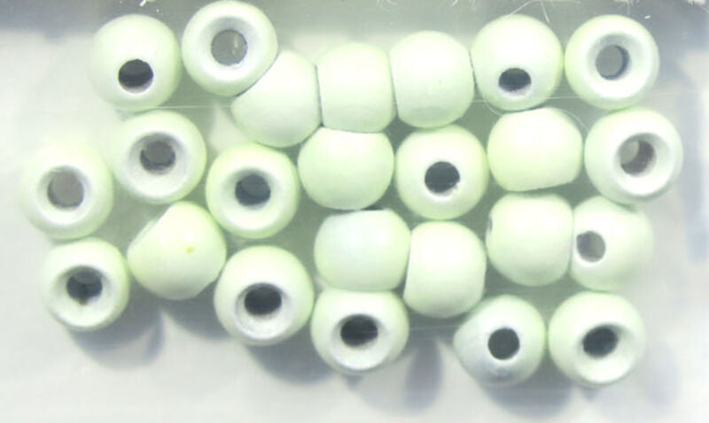 These brass beads are countersunk to facilitate sliding around the hook bend.