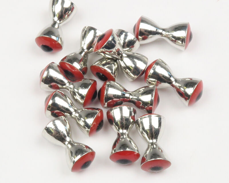 Tie them in and you have it all. Brass Barbells with built in colored eyes with pupils.