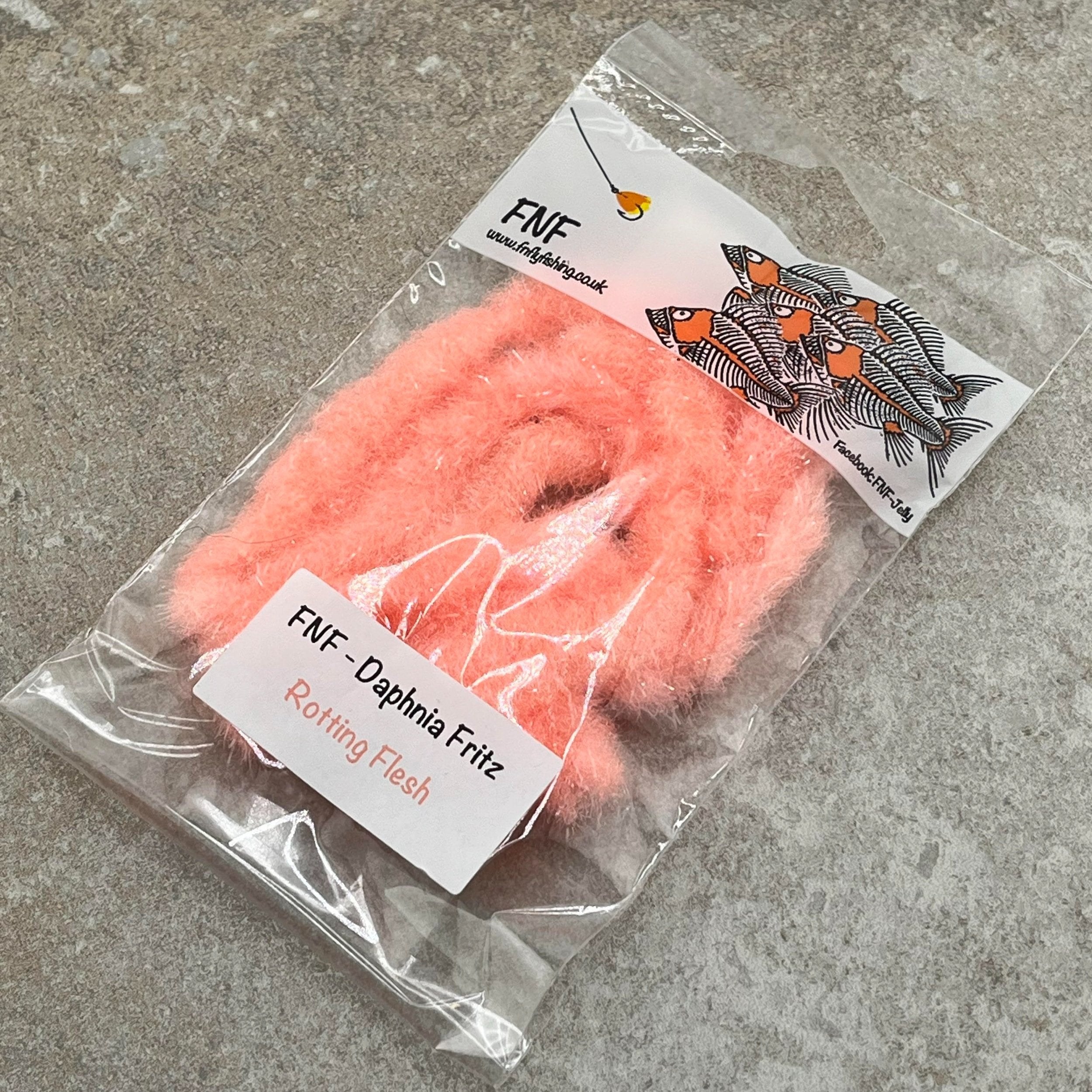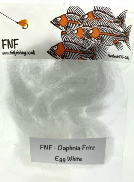 This is the newly produced and developed Daphnia Fritz by FNF, designed to give you a new style of blob or egg pattern. The translucent fiber is bonded to a micro core for easy tying, and its density requires only about 5 turns to fill a size 8 FNF blob hook. Wide gape hooks are recommended to ensure the hook point remains visible. The material's translucency also allows other colors and beads to show through.