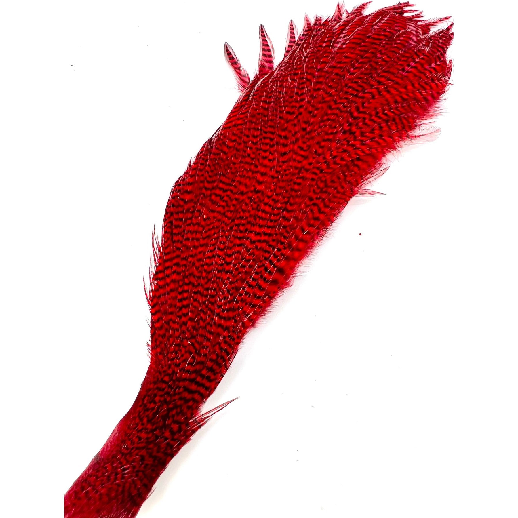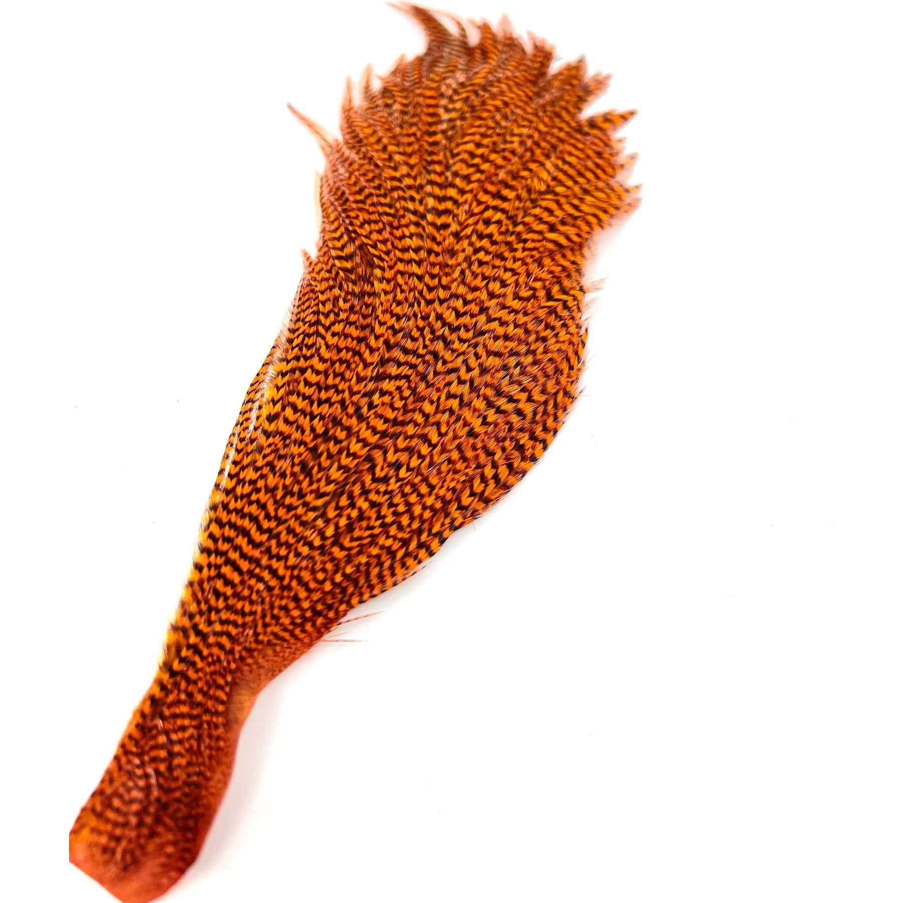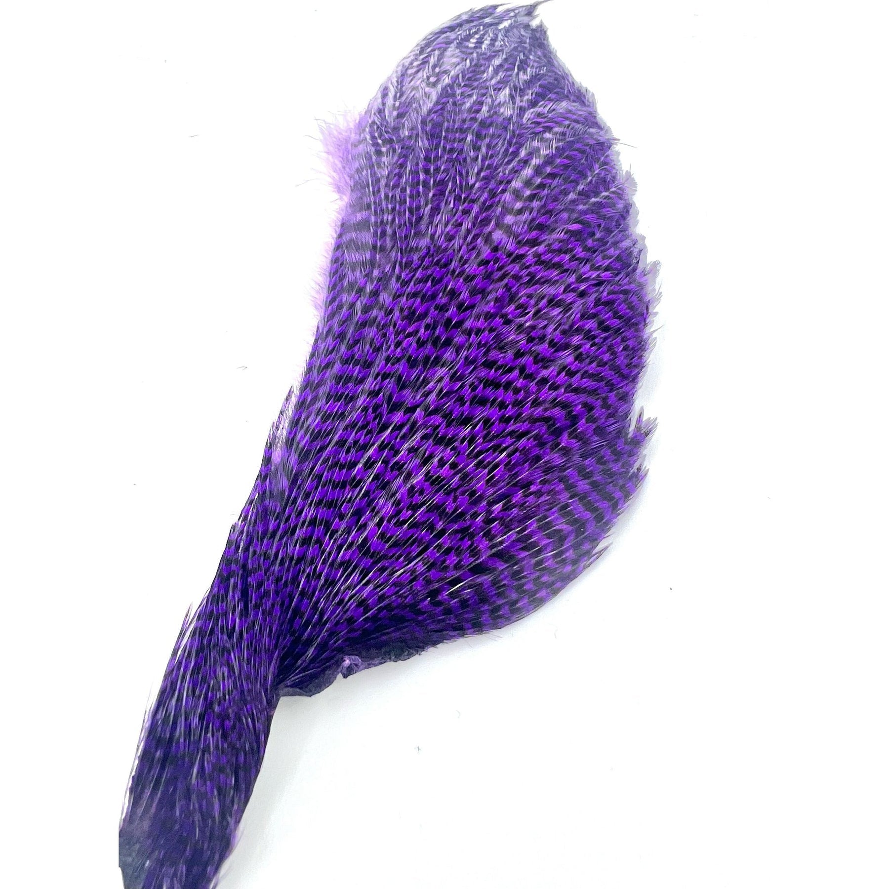 These Dyed Half Capes from Ewing have you covered for a wide variety of flies. You will find plenty of dry fly hackle with great barb density on the top half of the cape with sizes ranging from size 10-18 and smaller. On the bottom half, you'll find larger hackle good for streamers, poppers, bombers and big wooly buggers.