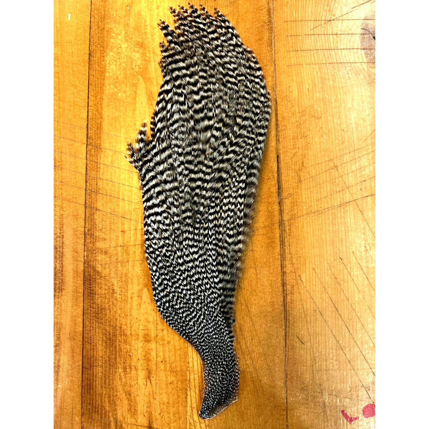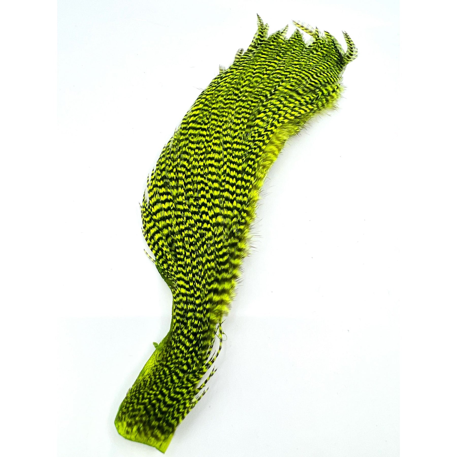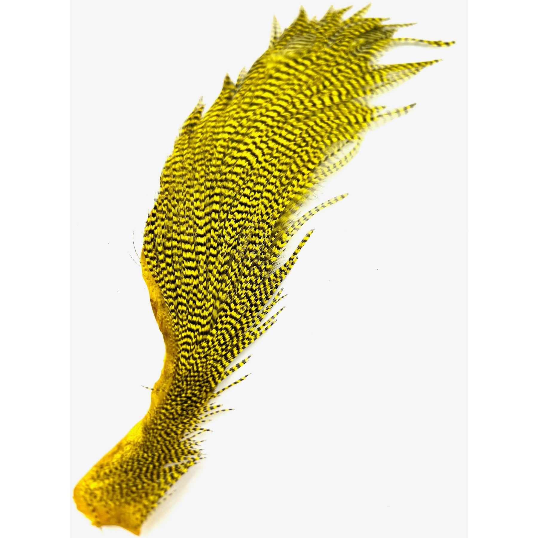 These Dyed Half Capes from Ewing have you covered for a wide variety of flies. You will find plenty of dry fly hackle with great barb density on the top half of the cape with sizes ranging from size 10-18 and smaller. On the bottom half, you'll find larger hackle good for streamers, poppers, bombers and big wooly buggers.